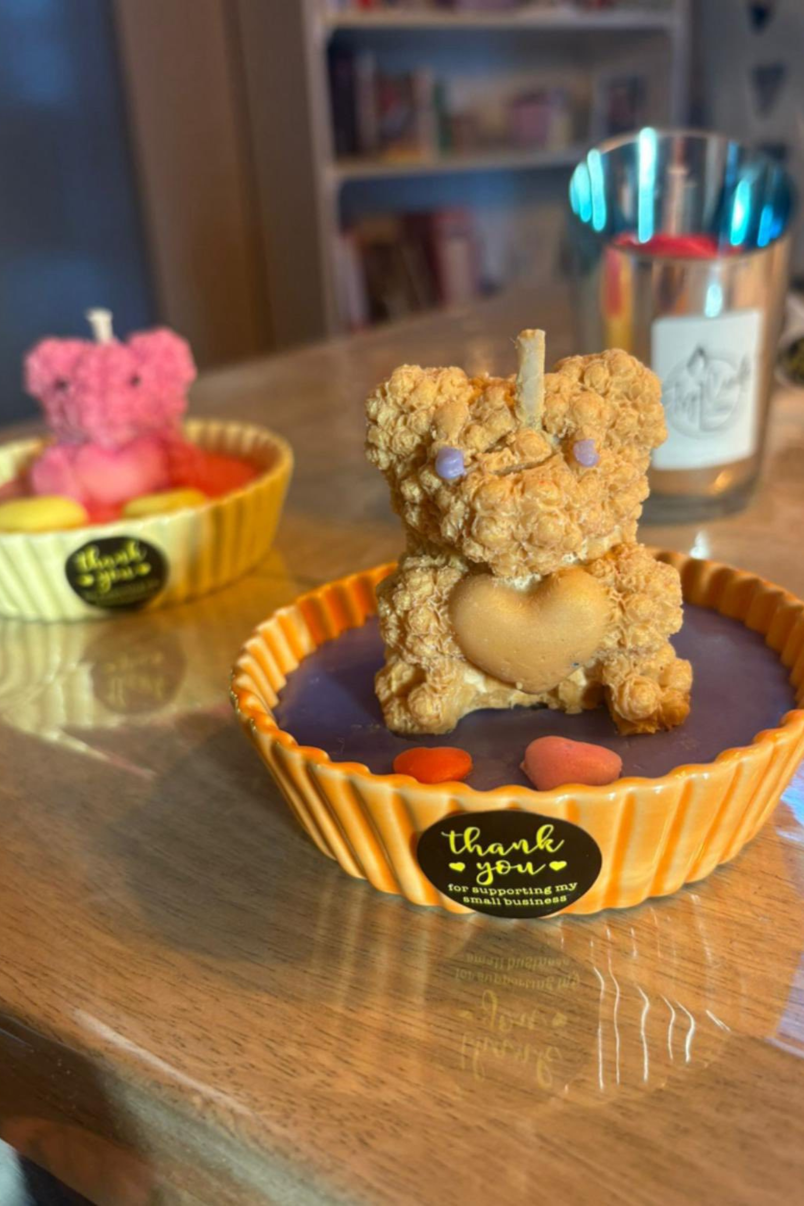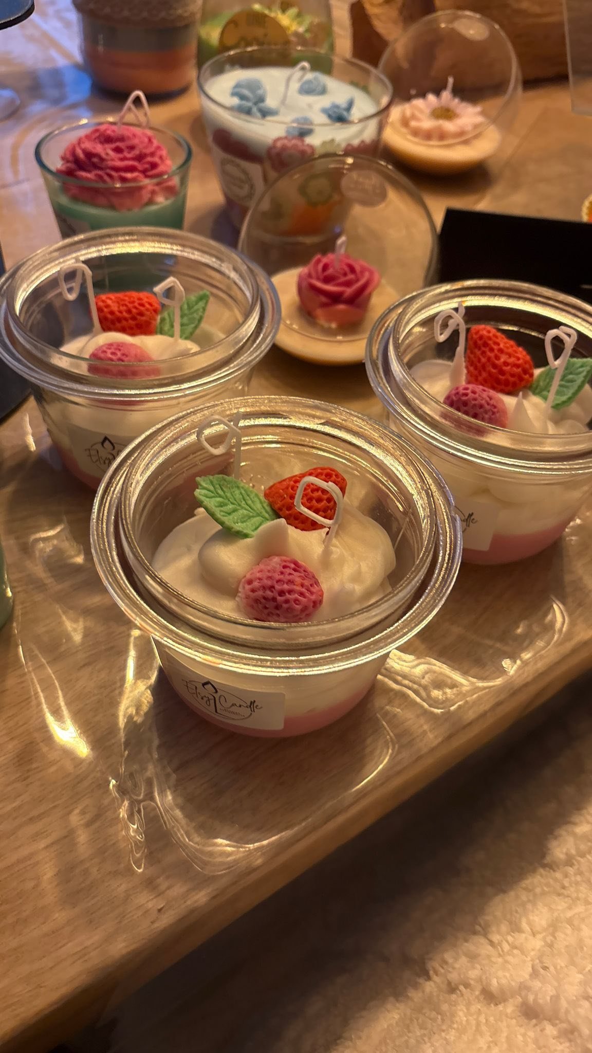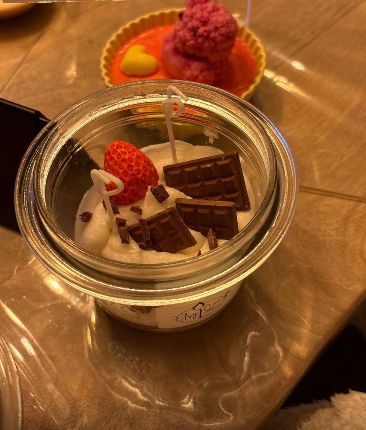 Ma spécialité ? Les bougies trompe-l’œil, ces créations surprenantes qui ressemblent à des desserts, des boissons ou d’autres objets du quotidien… mais qui sont en réalité de vraies bougies artisanales, faites avec soin et amour. Chaque bougie est unique, conçue à la main, avec une attention particulière portée au visuel autant qu’au parfum.